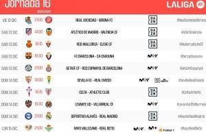 - 西甲第16轮时间:巴萨12月14日01:30对阵奥萨苏纳,皇马15日出战