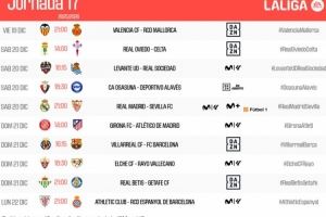 - 西甲第17轮赛程:12月21日4点皇马vs塞维利亚 23:15黄潜vs巴萨